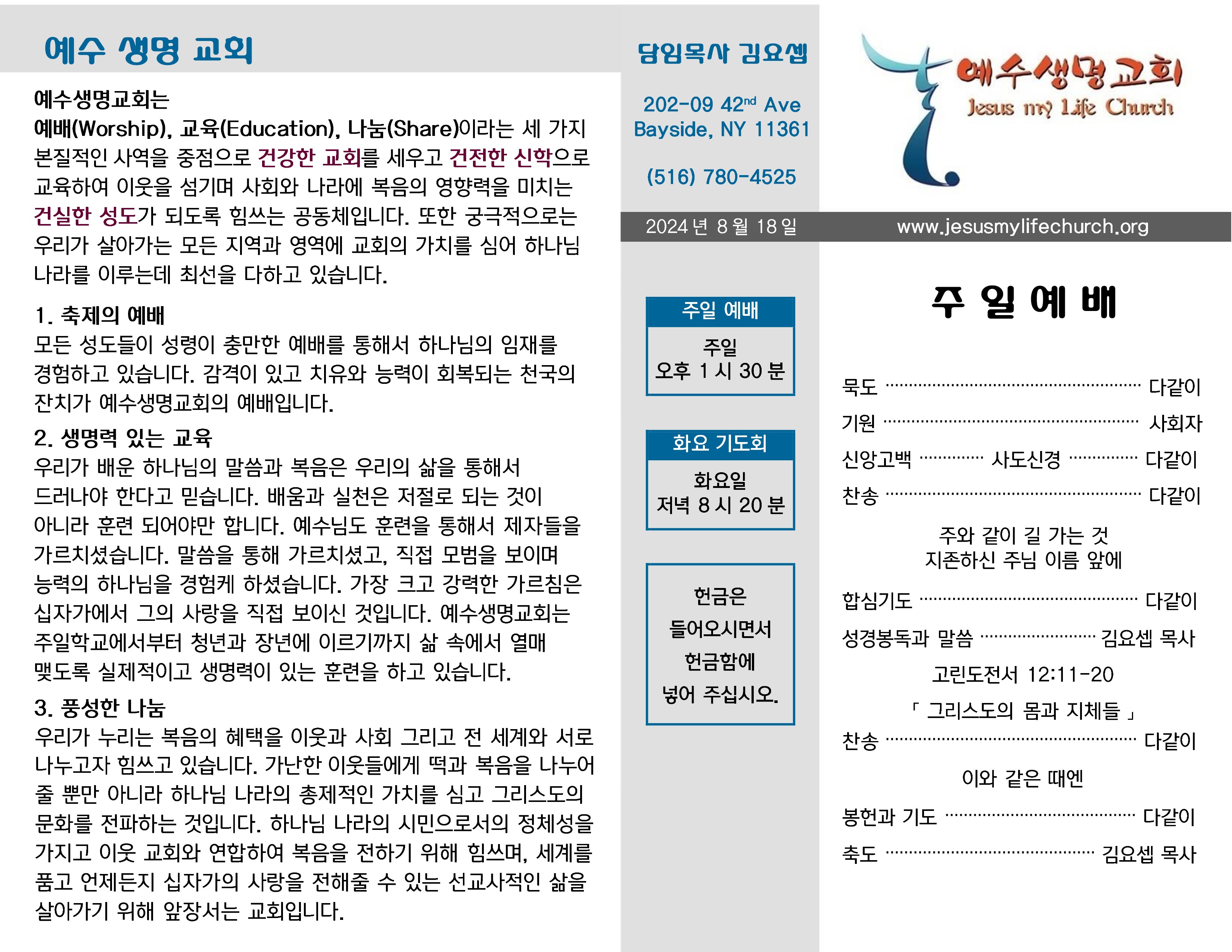 2024년 8월 18일 주일 예배