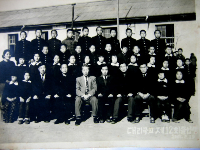 제가 졸업한 대리국민학교는 1학년부터 6학년까지 모두 한 학년이 한 반씩으로 편성되어 있었습니다. 워낙 학교가 작았으니까요. 우리 '리'(동네 이름이 대리였습니다. 큰 대자에 마을 리자를 쓰는 동네였습니다. 면 소재지도 아니었는데, 우리 동네 아이들만 다니는 학교가 따로 있었습니다. 분교가 아닌 정식 학교였습니다.)에 속한 아이들만 다니는 학교라서 1학년부터 6학년까지 한 반이었습니다. 제 학년은 남자가 19명, 여자가 16명이었는데, 이제는 친구들의 얼굴도 기억을 해내지 못하겠습니다. 은사님들의 성함은 모두 기억이 나는데, 유독 가운데 줄 왼쪽에 서 계시는 여자 선생님의 성함은 기억이 나지 않습니다.