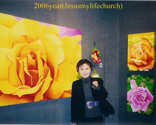 장미꽃 그림속에 파묻혀 더욱 아름답게 뵈는 김지나집사님 의 모습